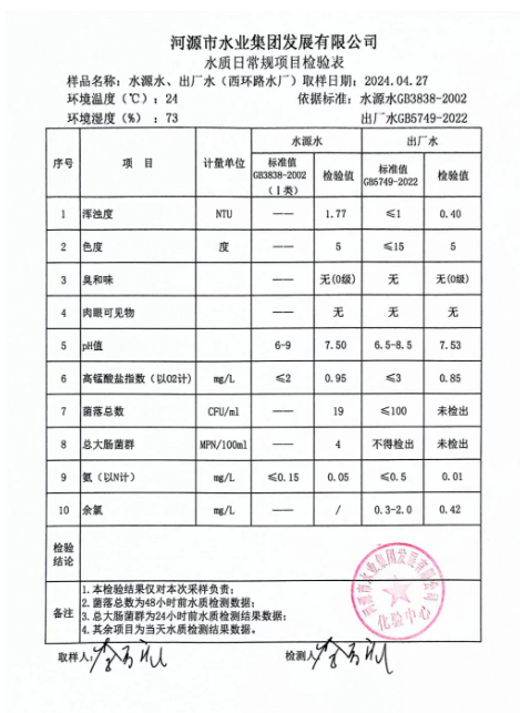 2024年4月27日水質(zhì)檢驗報告 ???