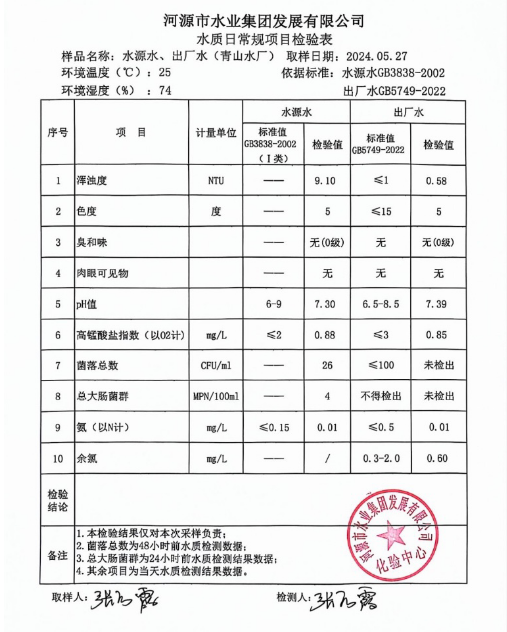 2024年5月27日水質(zhì)檢驗(yàn)報(bào)告 ???