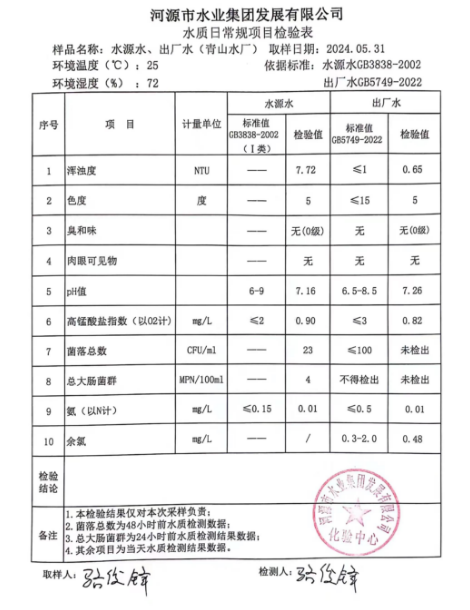 2024年5月31日水質(zhì)檢驗(yàn)報(bào)告 ???