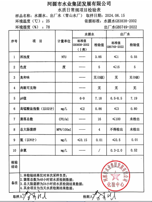2024年6月15日水質(zhì)檢驗(yàn)報(bào)告