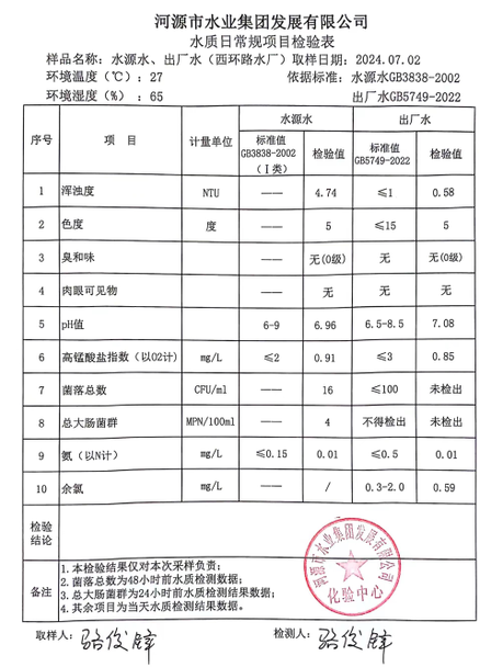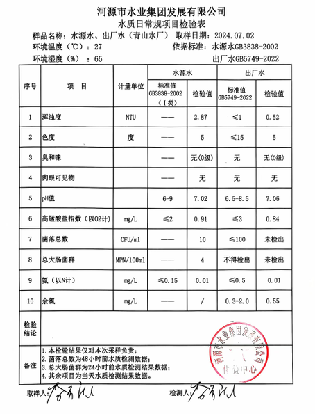 2024年7月2日水質(zhì)檢驗(yàn)報(bào)告