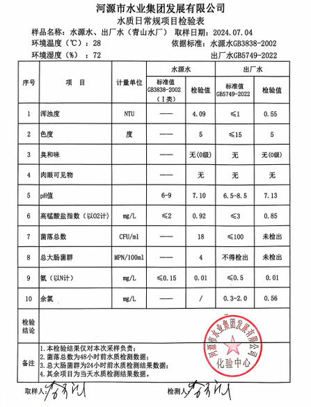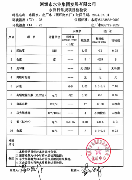 2024年7月4日水質檢驗報告