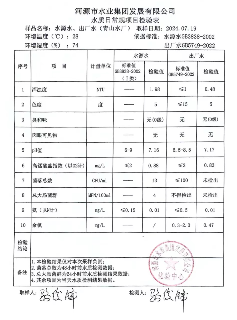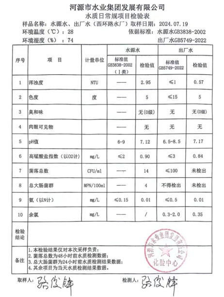 2024年7月19日水質(zhì)檢驗(yàn)報告