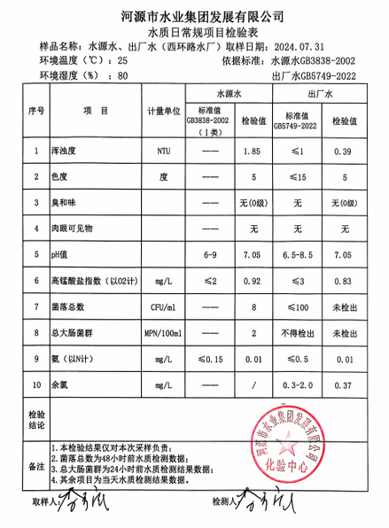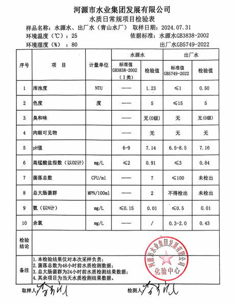 2024年7月31日水質(zhì)檢驗報告