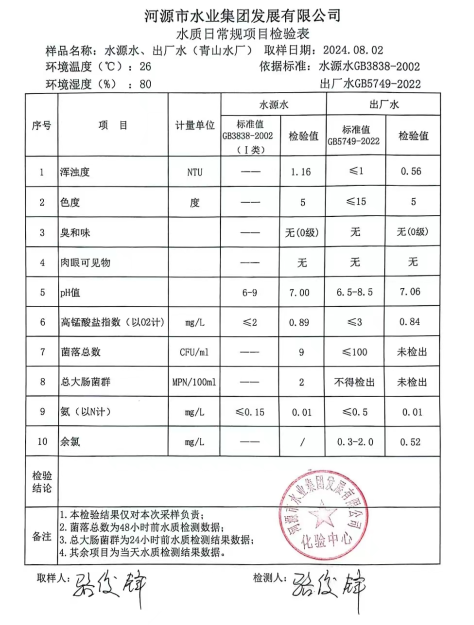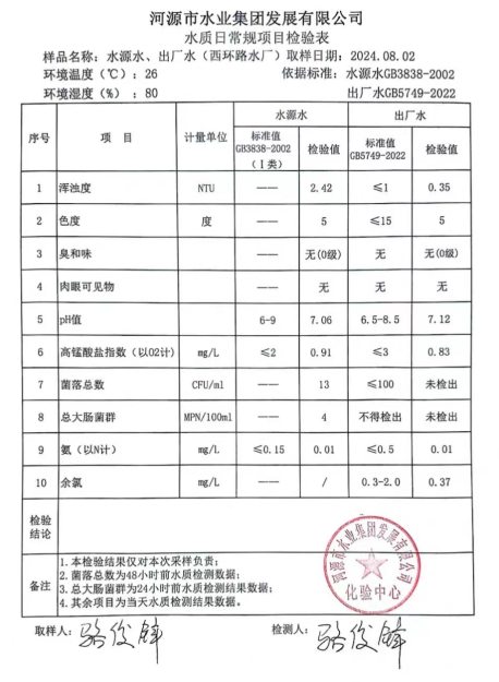 2024年8月2日水質(zhì)檢驗(yàn)報(bào)告