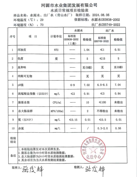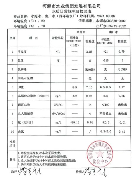 2024年8月6日水質(zhì)檢驗(yàn)報告