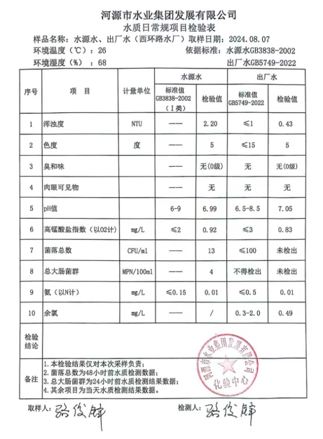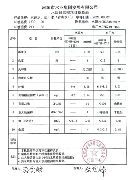 2024年8月7日水質(zhì)檢驗(yàn)報(bào)告