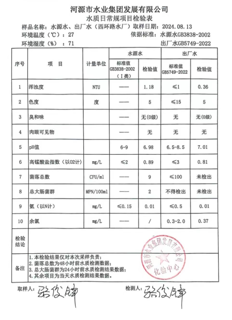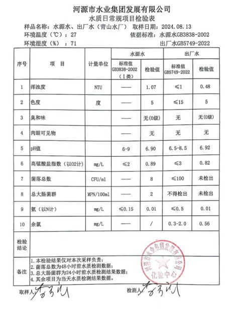 2024年8月13日水質(zhì)檢驗報告