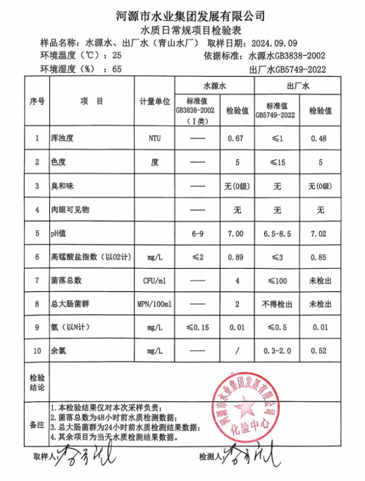 2024年9月9日水質(zhì)檢驗(yàn)報(bào)告