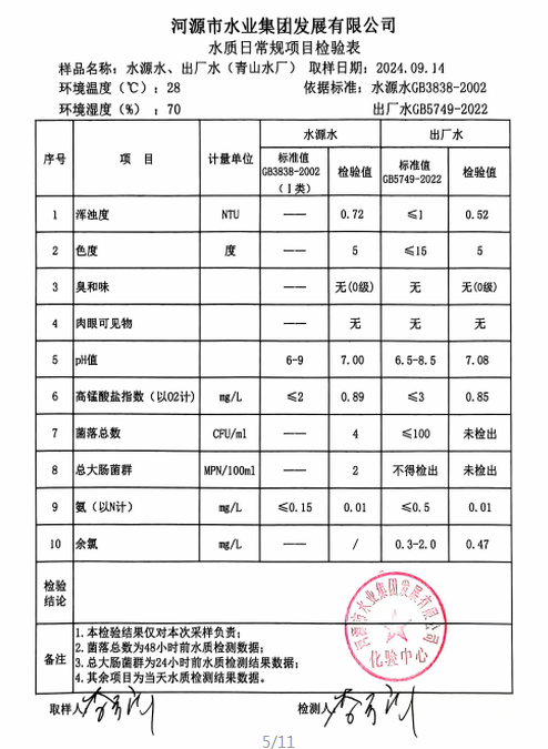 2024年9月14日水質(zhì)檢驗報告
