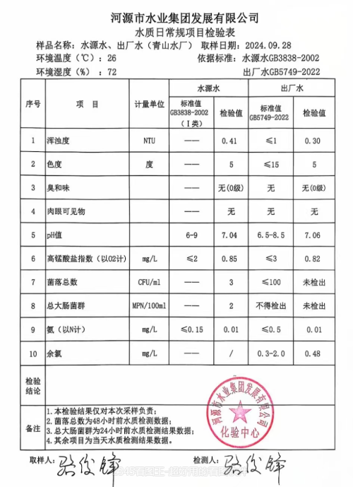 2024年9月28日水質(zhì)檢驗(yàn)報(bào)告